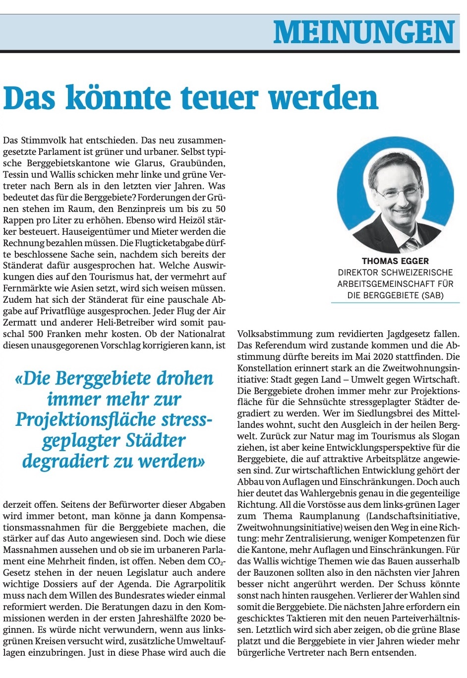 „Das könnte teuer werden„. Beurteilung der eidgenössischen Wahlen aus Sicht der Berggebiete im WB.